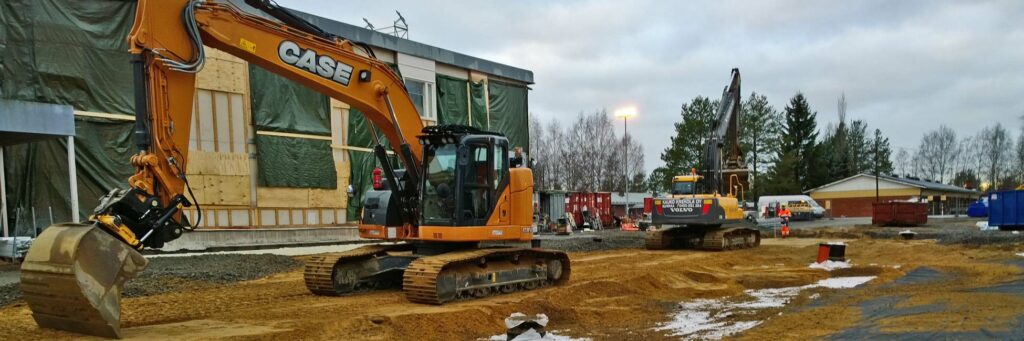 Teemme rakennuspohja-, vesijohto- ja viemäri- sekä kaukolämpötöitä. Lisäksi palveluihimme kuuluu avo- ja salaojitukset, maansiirrot sekä erilaiset purkutyöt.
